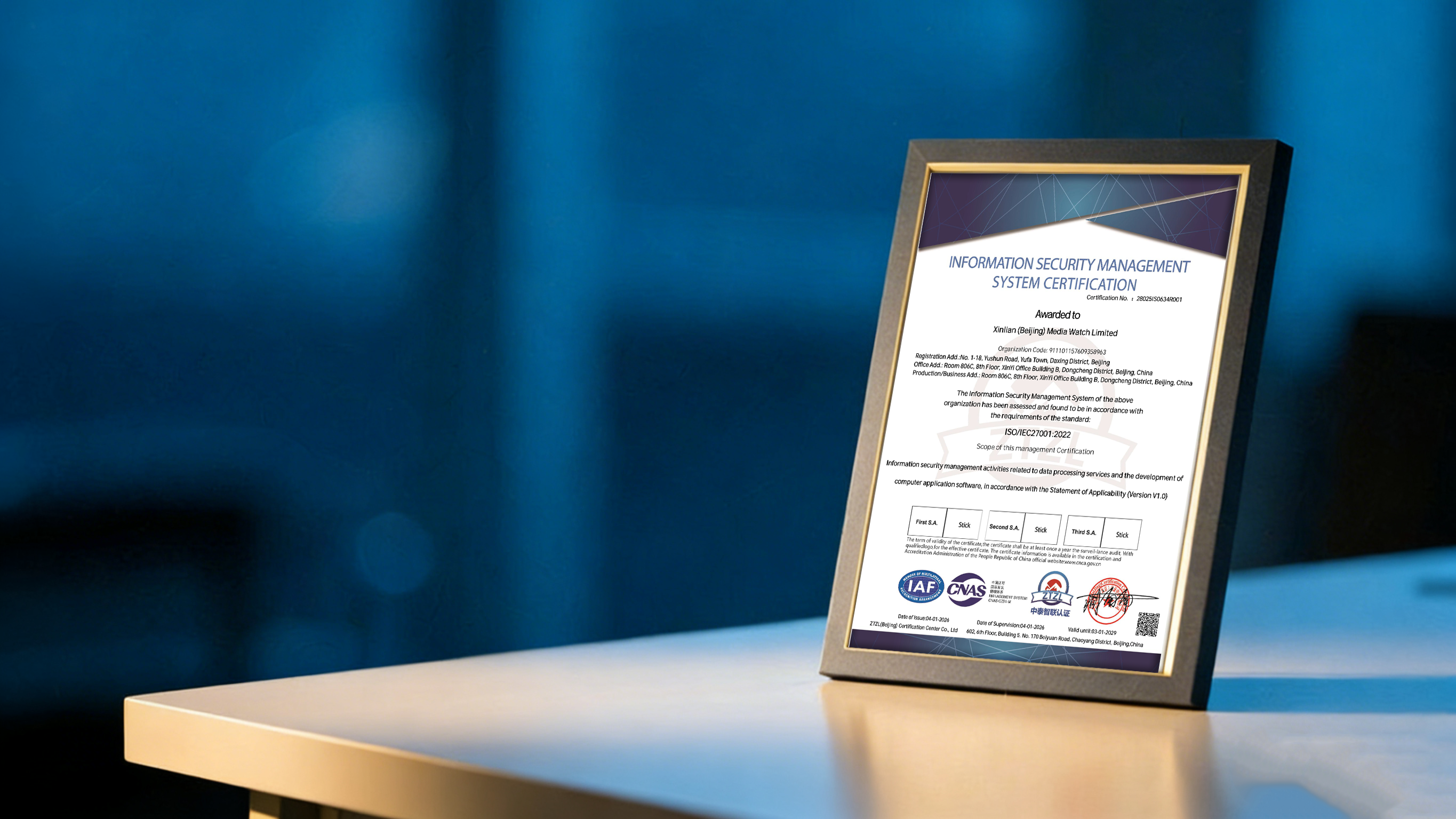 BEIJING — January 5, 2026 — Xinlian (Beijing) Media Watch Limited, a premier provider of media monitoring and communications research, today announced it has officially been awarded the ISO/IEC 27001:2022 certification. This international accreditation validates that Xinlian’s Information Security Management System (ISMS) meets the highest global standards for protecting customer data and ensuring operational integrity.